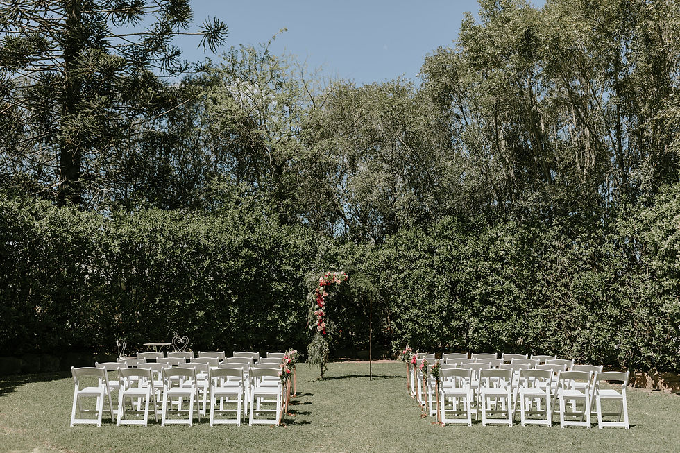 Welcome to the Views Garden, where wild and whimsical ceremonies come to life against breathtaking country views. Our dual-tier garden ensures that every guest witnesses your special moment, with the heritage barn standing proudly behind the bride, symbolizing the rich history of this unique Camden venue. Overlooking stunning acreage, this enchanting space captures the essence of country charm. It's the perfect backdrop for romantic sunset photos, as the sun sets over the rolling hills, creating unforgettable memories.